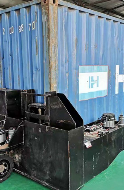 采用 2 臺(tái)集裝箱搬運(yùn)機(jī)器人聯(lián)合工作形式,采用組合式全方位 萬向的四輪電驅(qū)動(dòng)四輪電轉(zhuǎn)向的運(yùn)動(dòng)方式,動(dòng)力供應(yīng)由蓄電池組提供能量。 本項(xiàng)目產(chǎn)品為一套集裝箱搬運(yùn)設(shè)備