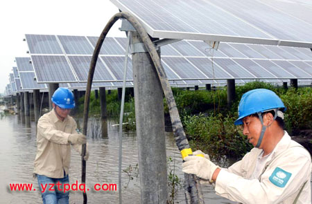 寶應(yīng)漁光互補(bǔ)30兆瓦光伏項(xiàng)目,位于揚(yáng)州市寶應(yīng)縣射陽(yáng)湖鎮(zhèn),占地面積930畝,于2013年4月8日開工建設(shè),10月31日并網(wǎng)發(fā)電。經(jīng)寶應(yīng)縣供電公司工程部負(fù)責(zé)人介紹,今年4月初,該供電公司接受該項(xiàng)目工程總承包委托。在項(xiàng)目建設(shè)過(guò)程中,公司積極主動(dòng)工作,從7.5千米長(zhǎng)的110千伏線路施工到110千伏變電接入間隔的施工,嚴(yán)格按照施工圖紙進(jìn)行,監(jiān)理全程跟蹤監(jiān)督,對(duì)每道工序嚴(yán)格把關(guān),同時(shí),認(rèn)真為客戶做好“漁光互補(bǔ)”光伏項(xiàng)目申報(bào)、接入方案制定、基建臨時(shí)用電、項(xiàng)目驗(yàn)收、運(yùn)行值班人員安全培訓(xùn)等工作。