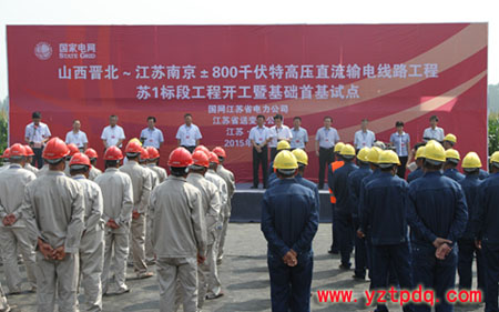 8月26日上午10時,山西晉北—江蘇南京±800千伏特高壓直流輸電線路工程蘇1標(biāo)段工程開工暨基礎(chǔ)施工首基試點(diǎn)活動在徐州豐縣趙莊鎮(zhèn)舉行。這標(biāo)志著首條由國網(wǎng)江蘇省電力公司負(fù)責(zé)建設(shè)管理的特高壓直流線路工程正式開建。