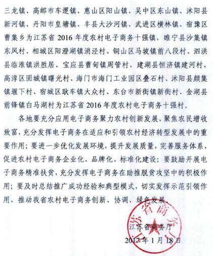 日前,在江蘇省商務(wù)廳發(fā)布的“江蘇省2016年度農(nóng)村電子商務(wù)十強(qiáng)縣(鎮(zhèn)、村)”名單中,寶應(yīng)縣曹甸鎮(zhèn)周管村入選“十強(qiáng)榜單”,獲評電子商務(wù)十強(qiáng)村。