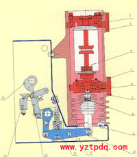 目前真空斷路器毫無例外地采用對(duì)接式接觸方式。動(dòng)觸頭碰上靜觸頭之后就不能再前進(jìn)了,觸頭接觸壓力是由每極觸頭壓縮彈簧(有時(shí)稱作合閘彈簧)提供的。所謂接觸行程,就是開關(guān)觸頭碰觸開始,觸頭壓簧施力端繼續(xù)運(yùn)動(dòng)至?xí)[終結(jié)的距離,亦即觸頭彈簧的壓縮距離,故又稱壓縮行程。