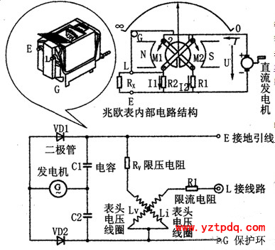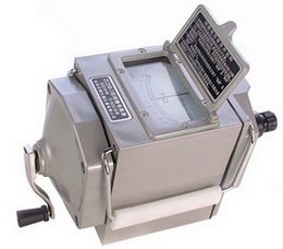 用于測(cè)量高值電阻和絕緣電阻的儀表叫做搖表,現(xiàn)在新型產(chǎn)品通常稱(chēng)為絕緣電阻測(cè)試儀或者絕緣電阻表,有時(shí)也稱(chēng)為兆歐表。其中老款搖表的外形如下右圖所示:搖表(絕緣電阻表)主要結(jié)構(gòu)是由手搖發(fā)電機(jī)、電磁式無(wú)機(jī)械反作用的表頭組成,對(duì)外有接線柱(L:線路段、E:接地端、G:屏蔽端)。新型的絕緣電阻測(cè)試儀通常和數(shù)字萬(wàn)用表差不多的外形。