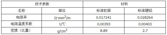 軟銅及硬鋁在20℃時(shí)的技術(shù)參數(shù)