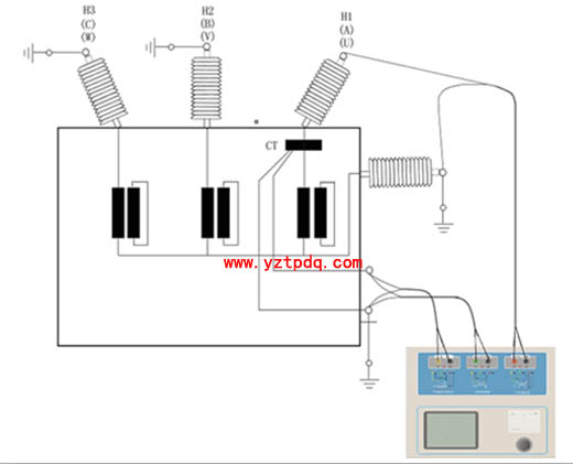注意:一次端子H1不能接地,否則一次側(cè)都接地了,則測(cè)試儀不能獲取正確結(jié)果。
