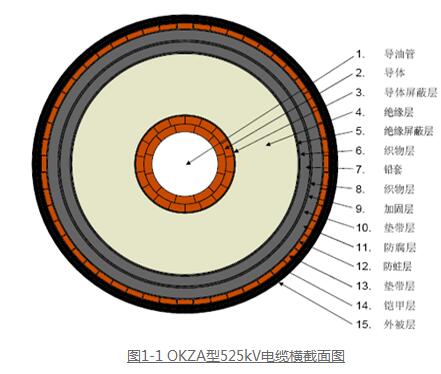 大多電纜采用的是充油電纜,其電纜橫截面如圖1-1所示。其中,中心油管直徑30mm,主絕緣厚度為28.5mm,主絕緣外面有多層金屬護層,如鉛層、加固層、防蛀層、鎧甲層等。頂外面的外被層厚度為4mm。