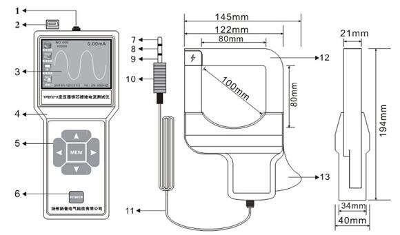 12、電流鉗尺寸:194mm×145mm×40mm