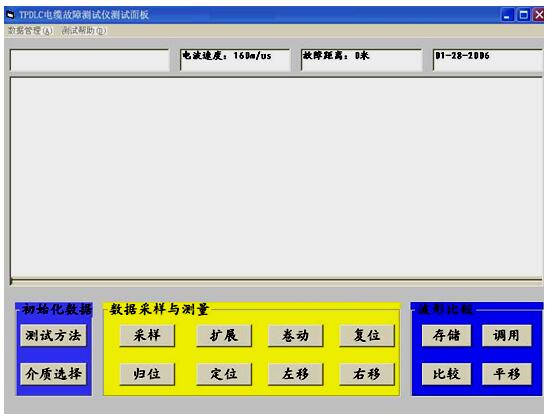 狀態(tài)欄里顯示四個(gè)方面的信息,Z左邊是測(cè)試方式;第二個(gè)是選擇的電纜介質(zhì)所對(duì)應(yīng)電波速度(若是測(cè)速度,則不顯示介質(zhì)信息)第三個(gè)是故障距離(或電纜長(zhǎng)度),右邊顯示測(cè)試日期。