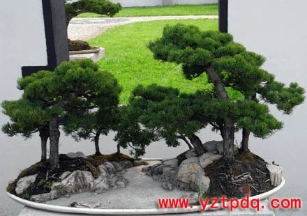 揚(yáng)州盆景分樹(shù)樁盆景、山水盆景和水旱盆景等。特別是觀葉類(lèi)的松柏榆楓、瓜子黃楊等樹(shù)樁盆景,可謂獨(dú)樹(shù)一幟。揚(yáng)派盆景受揚(yáng)州明清時(shí)期畫(huà)風(fēng)的熏陶,并受古城造園、養(yǎng)花傳統(tǒng)的影響,形成了自己獨(dú)特的風(fēng)格。它仿效名山大川,借鑒山水名畫(huà),方寸之間,意境闊大。造型嚴(yán)謹(jǐn)而富有變化,清秀而不失壯觀。“一寸三彎,功在剪扎”。品種多達(dá)五、六十種,在國(guó)內(nèi)外享有盛譽(yù)。