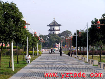 廣場(chǎng)設(shè)計(jì)遵循“以人為本、以水為源、以綠為美”的原則,注重高郵水鄉(xiāng)的地域特色。在整體布局上采用“一軸二面三點(diǎn)”,即以“景觀主軸線,蝶池小面、蝶園主廣場(chǎng),入口商業(yè)休閑廣場(chǎng)、親水廣場(chǎng)、宋城墻魁星閣古跡”為主體,水上平臺(tái)和引橋流水融為一體,使人感受到水鄉(xiāng)特有的水性的滋潤。廣場(chǎng)綠化設(shè)計(jì)充分體現(xiàn)“花香蝶自來”的意境,種植花草樹木近40個(gè)品種,其中有櫸樹、香樟、桂花、梅花、天堂草等,錯(cuò)落有致。駐足看,廣場(chǎng)綠草如茵,彩蝶飛舞,彩色噴泉千姿百態(tài);徐行聽,流水淙淙,舞曲翩翩,綠樹叢中鳥啼鶯囀,讓人心曠神怡。