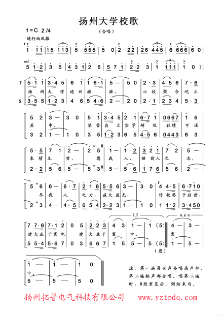 《揚(yáng)州大學(xué)校歌》9月16日,經(jīng)揚(yáng)州大學(xué)黨委常委會審定,并確定了揚(yáng)州大學(xué)校歌。