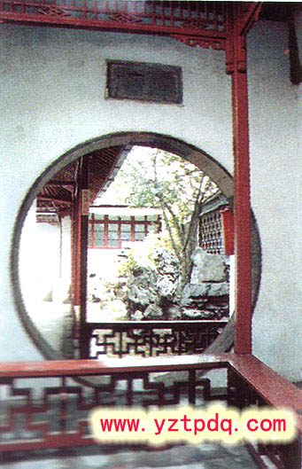 東院以回廊通連,南向植細(xì)桿梧桐,瘦長如修竹,饒有清妍之姿。經(jīng)回廊達(dá)半亭,亭欄臨水,池水由此北折,水池盡頭,有軒三間,池邊花壇上置數(shù)點峰石,小徑用鵝卵石砌鋪。游人至此,雖則地已窮盡,但隨路一轉(zhuǎn),或東登半亭,或緣池西去,達(dá)于園之西部。