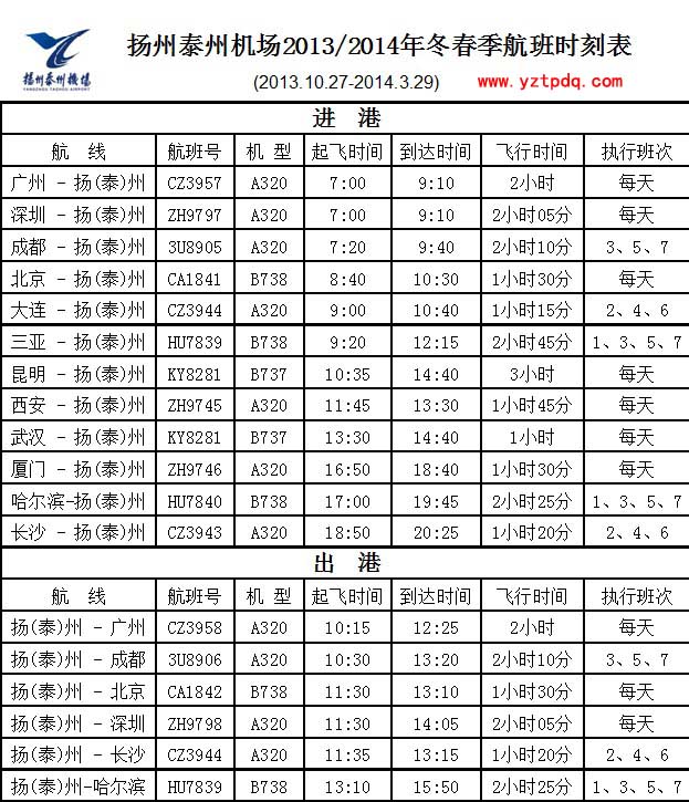 每年10月下旬開始,機(jī)票市場進(jìn)入傳統(tǒng)淡季,因此每年10月底也進(jìn)入民航冬春航班換季的重要時刻。近日,從民航總局獲悉,2013年冬季至2014年春季全國民航航班換季工作準(zhǔn)備就緒,新的航班計劃將自2013年10月27日起執(zhí)行。揚州泰州機(jī)場提醒消費者注意根據(jù)航線與價格變化,及時調(diào)整出行計劃。