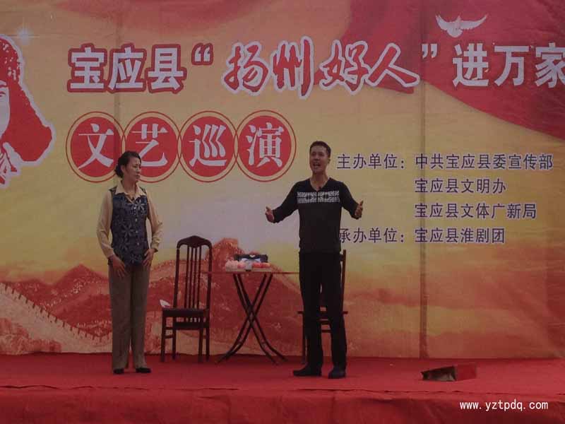 寶應縣淮劇團的演員們以農(nóng)民朋友喜聞樂見的淮劇形式,展現(xiàn)了愛崗敬業(yè)馬小梅、36年如一日照顧特殘軍人丈夫?qū)O云鳳、十年四救落水者的平民英雄張志成、用孝行和大愛撐起整個家的李順梅以及視腦癱小姑子如親妹、待多病的婆婆勝似親媽蔣長鳳等5位“揚州好人”的風采。他們精彩的演出博得了現(xiàn)場觀眾的陣陣掌聲。全鎮(zhèn)近千名群眾觀看了演出,通過文藝巡演傳遞了正能量,弘揚了新風尚。