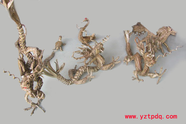 柳堡棕編工藝獨特,它綜合了柴編、蒲編、草紡的多種技藝,通過折、繞、纏、捏、塞、串等多種手法,利用棕葉獨特的材質,編織出惟妙惟肖的動物形象。產品主要為各種動物,特別適合昆蟲類,幾乎可達以假亂真。