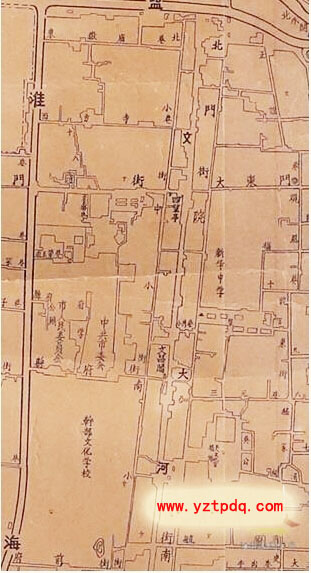 小編查找志書中地圖發(fā)現(xiàn),位于府衙、縣衙的東面,從舊城北門水關(guān)至南水關(guān)的這段市河,沿河附近設(shè)有縣學(xué)(現(xiàn)揚大附小址)、文魁樓(今四望亭)、文廟(今政協(xié)),河上架有文津橋,橋上有文昌閣,上曾懸有“邗上文樞”匾額……揚州的各類文化殿堂都緊臨這段市河。相傳在古代這段市河被視為文脈,因此這段市河在民間被稱為“文河”。