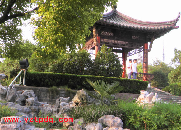 八寶亭坐落在揚(yáng)州寶應(yīng)城中心的縱棹園里。進(jìn)了素磚。高瓦的園門,走過(guò)垂柳依依的石路,踏上溪流涓涓的小橋,那飛檐翹角、凌然欲飛的八寶亭就躍人了你的眼簾。遠(yuǎn)遠(yuǎn)地,趙樸初先生書寫的餾金大字“八寶亭”赫然醒目。拾階而上,佇足亭內(nèi),八面來(lái)風(fēng),近聞鳥語(yǔ)花香,遠(yuǎn)眺旭日東升,悠悠然如臨仙境。
