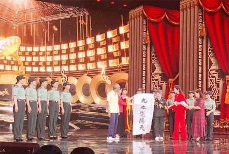 陶玉玲驚喜現(xiàn)身 與官兵代表共唱《九九艷陽天》
