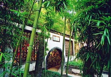 個(gè)園是一處典型的私家住宅園林。從住宅進(jìn)入園林,首先映入眼簾的是月洞形園門(mén)。門(mén)上石額書(shū)寫(xiě)“個(gè)園”二字,“個(gè)”者,竹葉之形,主人名“至筠”,“筠”亦借指竹,以為名“個(gè)園”,點(diǎn)明主題。園門(mén)兩側(cè)各種竹子枝葉扶疏,“月映竹成千個(gè)字”,與門(mén)額相輝映;白果峰穿插其間,如一根根茁壯的春筍。主人以春景作為游園的開(kāi)篇,想是有“一年之計(jì)在于春”的含意吧!透過(guò)春景后的園門(mén)和兩旁典雅的一排漏窗,又可瞥見(jiàn)園內(nèi)景色,樓臺(tái)、花樹(shù)映現(xiàn)其間,引人入勝。進(jìn)入園門(mén)向西拐,是與春景相接的一大片竹林。竹林茂密、幽深,與那幾顆瓊花展現(xiàn)出了生機(jī)勃勃的春天景象。