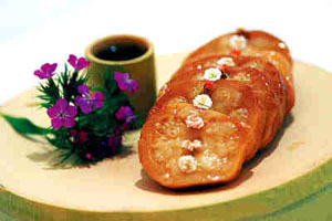 明清時(shí)期,寶應(yīng)白蓮藕粉被列為皇室貢品,有“鵝毛雪片”之稱;寶應(yīng)藕菜“蜜餞捶藕”滿譽(yù)江淮,為四方賓客所稱道。當(dāng)時(shí)寶應(yīng)名士喜好 藕菜,產(chǎn)生了“全藕席”,室供碗蓮盆景,壁掛荷花詩(shī) 畫,席中放一花瓶,以清水插鮮荷花數(shù)朵,色香味具全, 頗具雅趣。當(dāng)今揚(yáng)州的“全藕宴”列為寶應(yīng)十大名菜之首,給您帶來(lái)清淡、涼爽、馨香的感受。